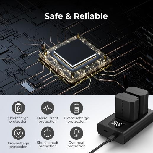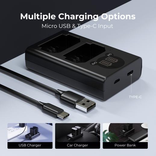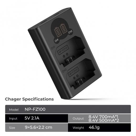 - Dual-slot Charger. The NP-FZ100 battery fast charger is equipped with micro-USB and Type-C dual interface, more convenient to use. Note: Only Type-C cable is included.